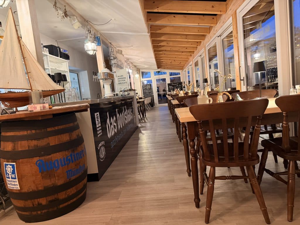 Herzlich Willkommen im Bootshaus Seeon – Restaurant, Bar, Seminarraum und Ferienwohnungen direkt am Strandbad Seeon mit Blick auf das Kloster und täglichem Sundowner!
